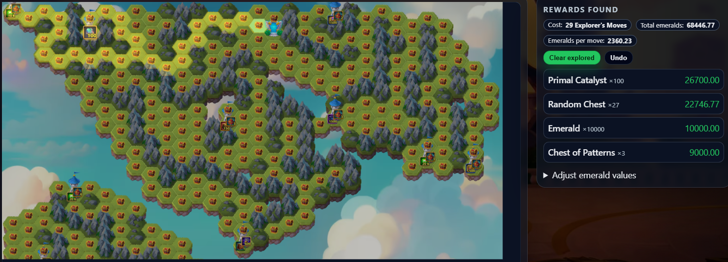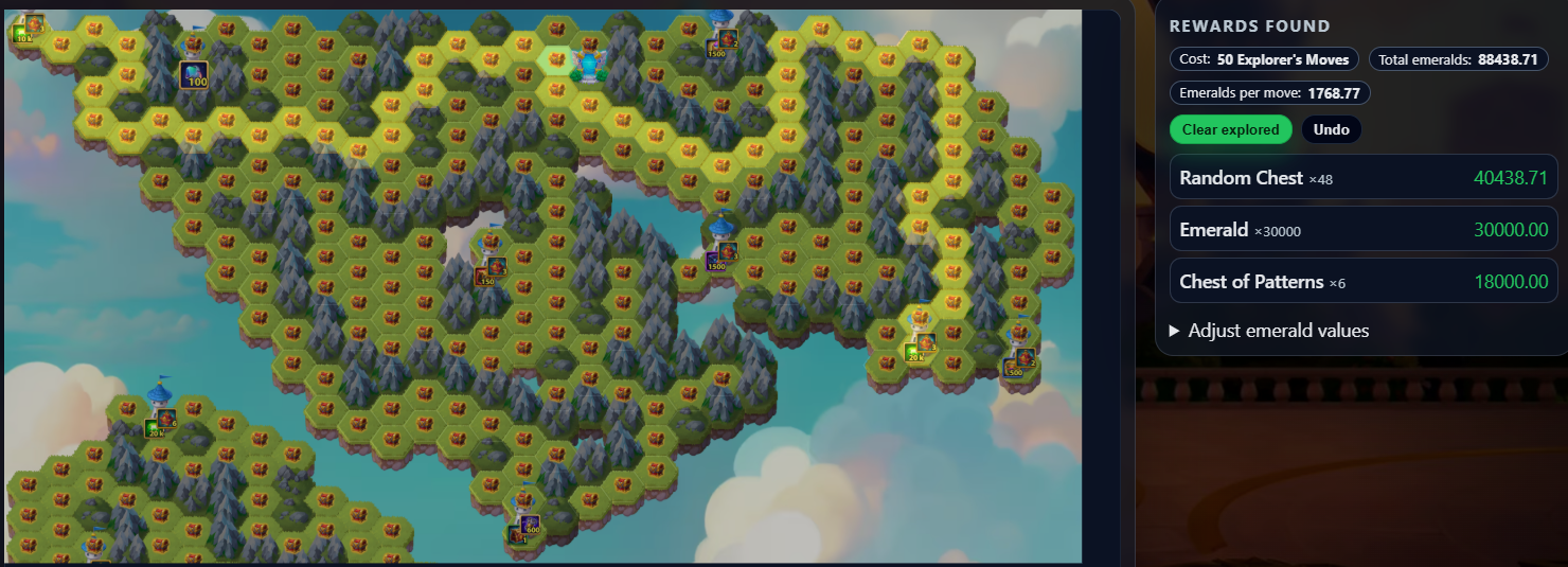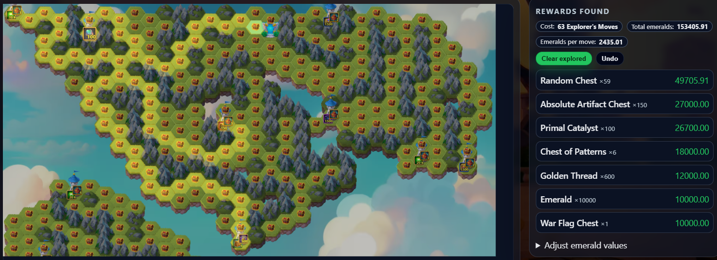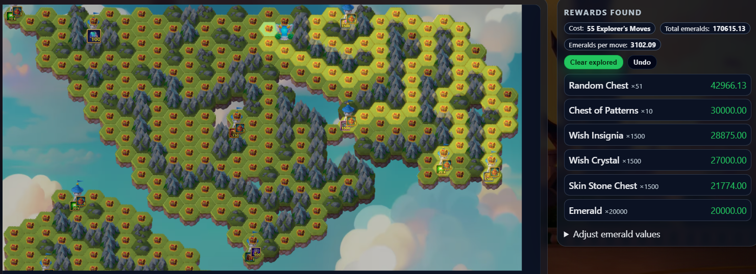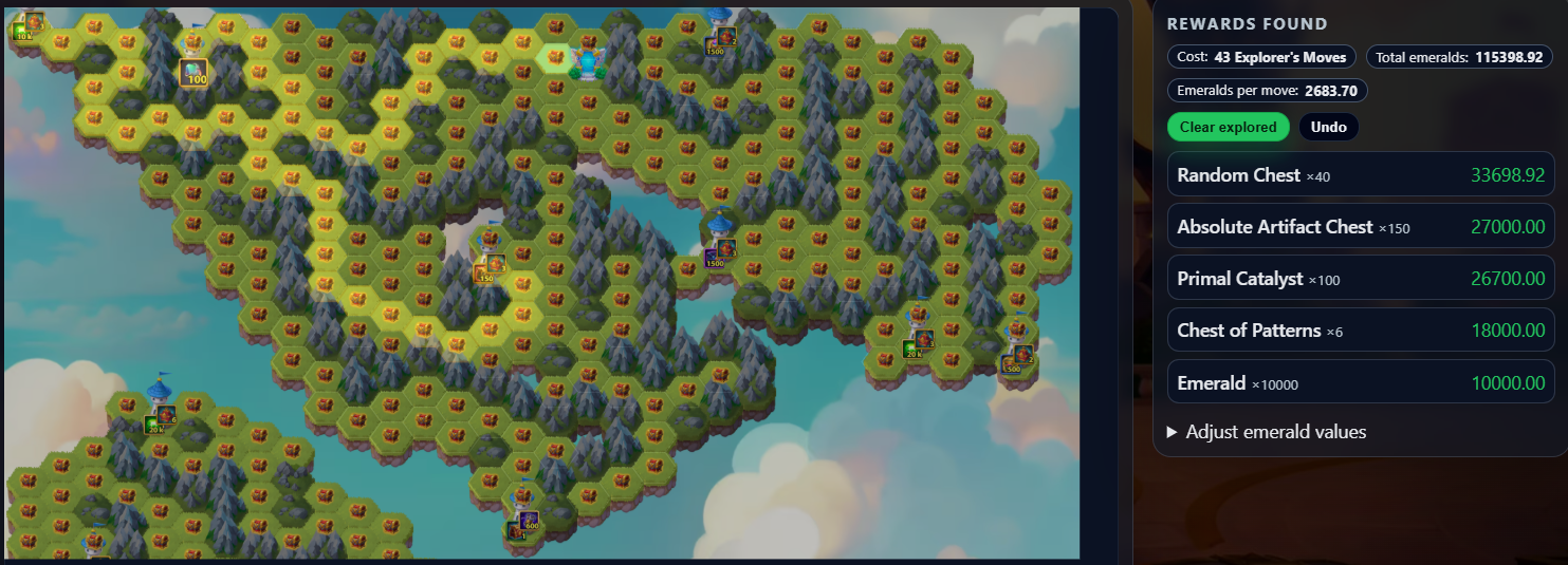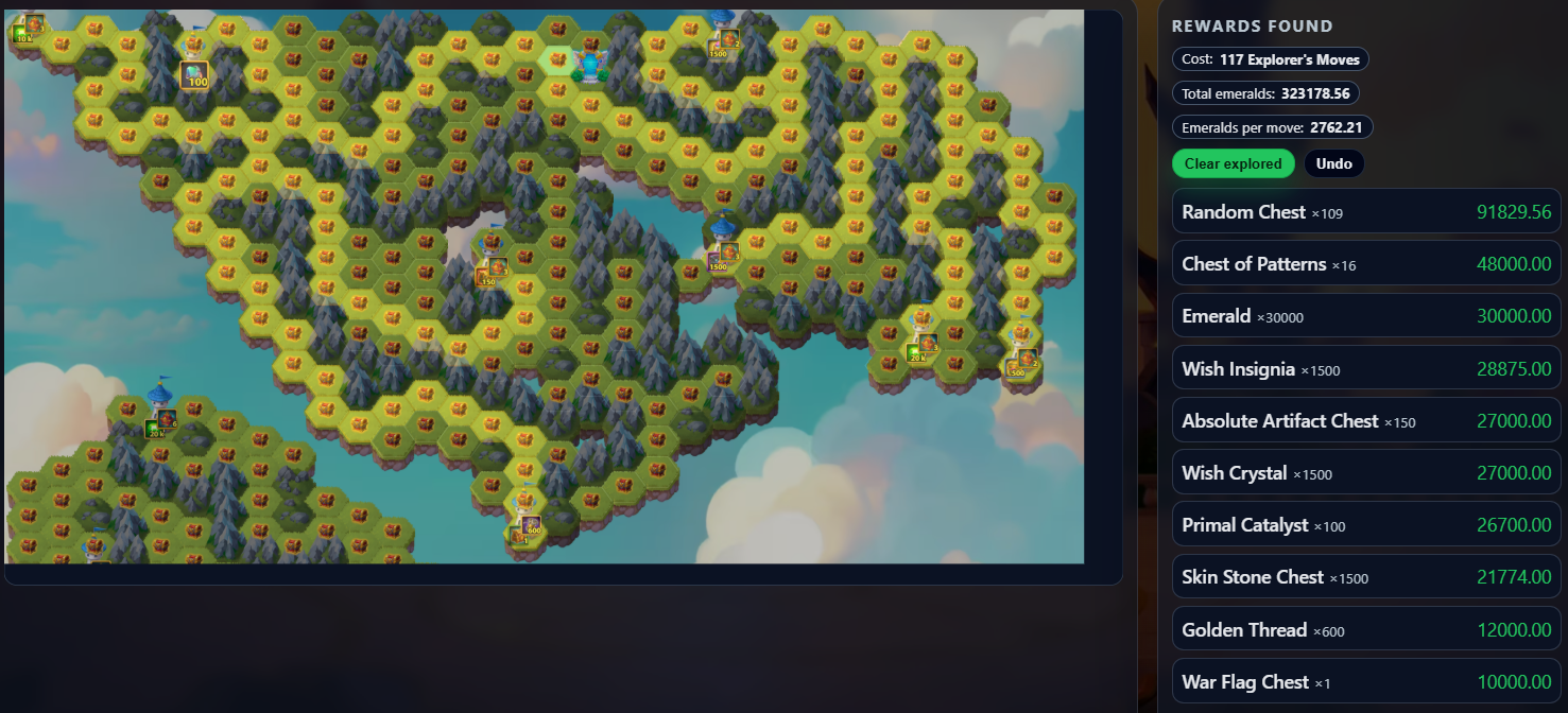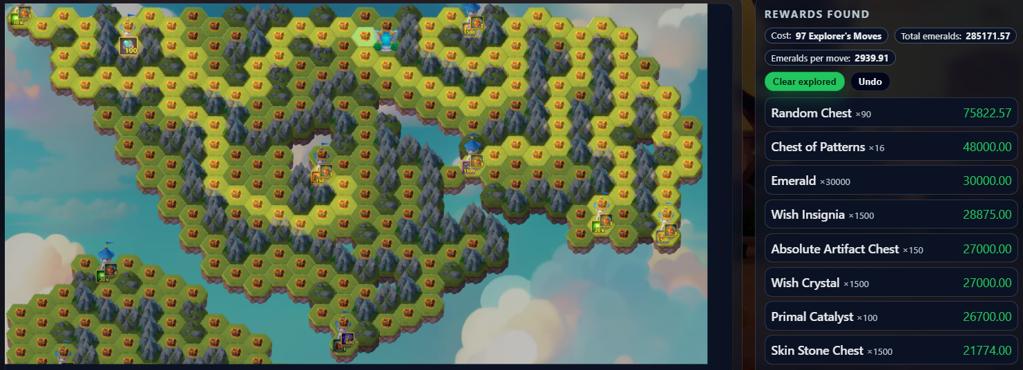 This tool shows the latest Mysterious Island layout and lets you plan your path to maximize rewards while minimizing resources.