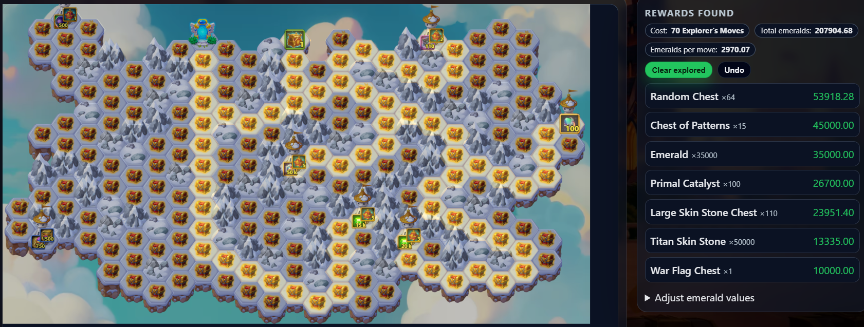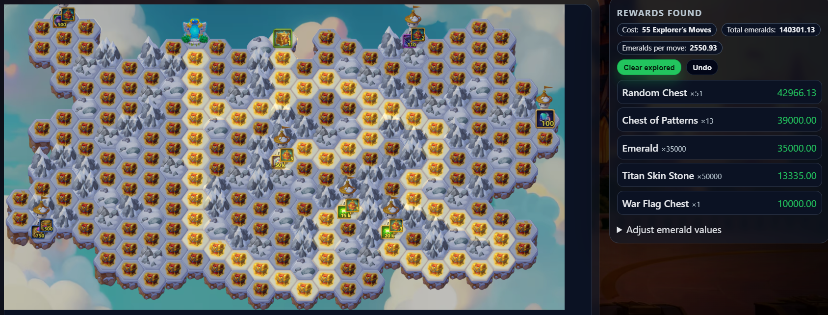 Overall, this February map is a bit worse than the Fluffy map, but it’s still not bad. it is better than many recent maps and generally an average one. Arguably, raw emeralds are especially valuable here, since spending them later lets you choose the resources you need most. That said, if you’re not in a rush, it’s reasonable to wait for the next map and decide based on how it compares.
