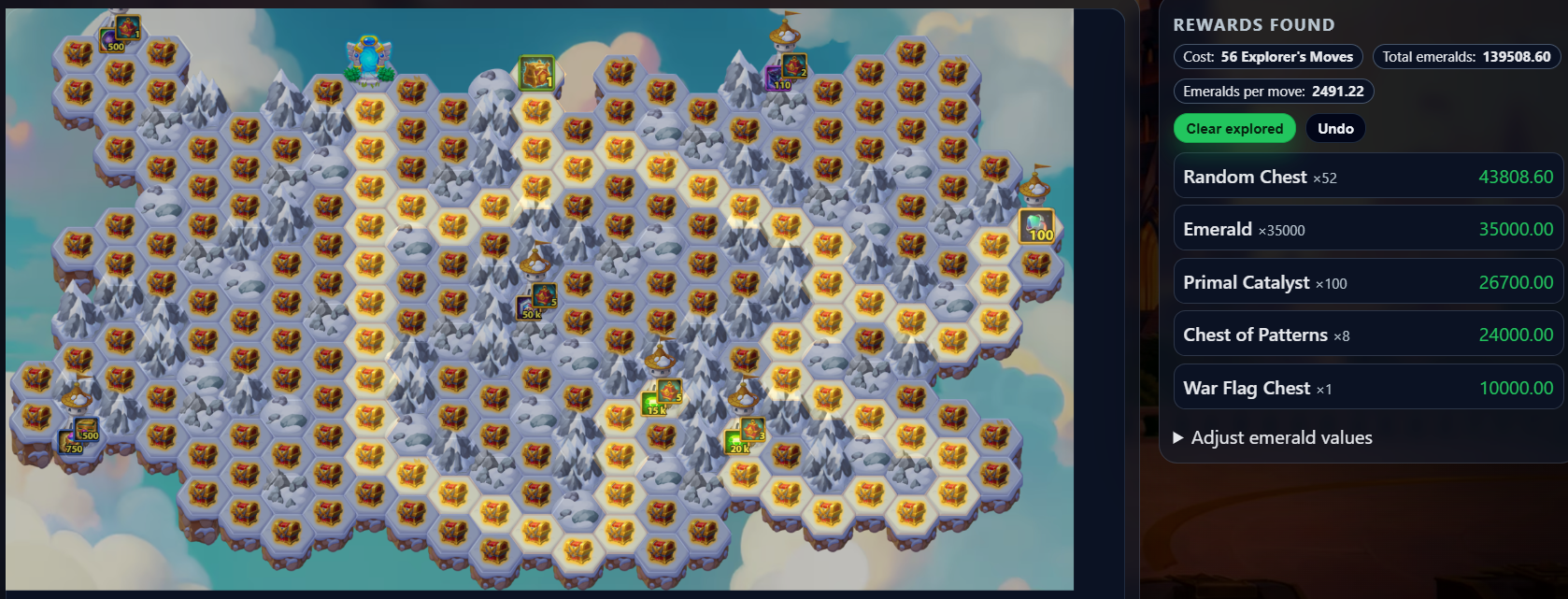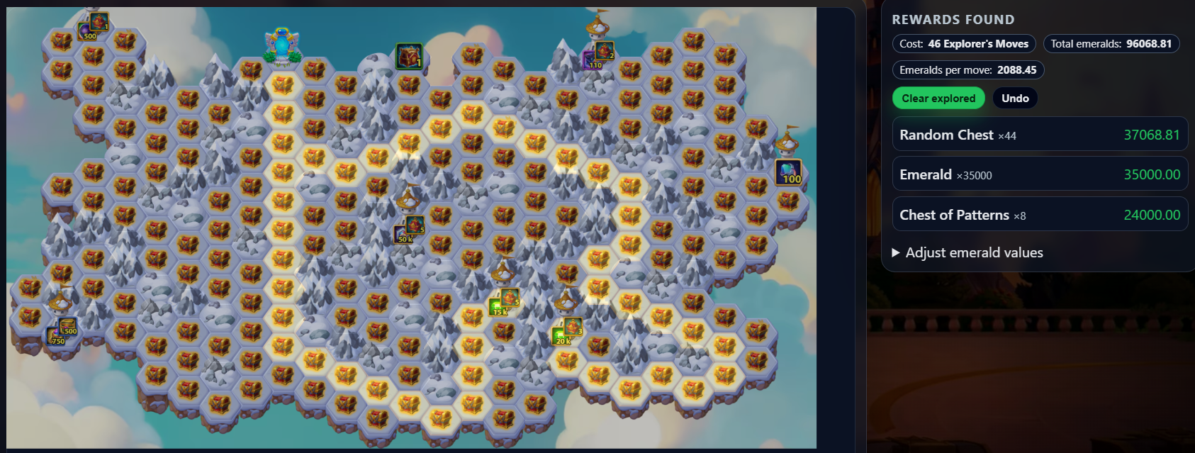This tool shows the latest Mysterious Island layout and lets you plan your path to maximize rewards while minimizing resources.