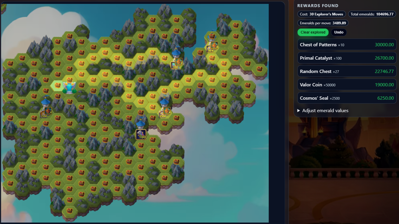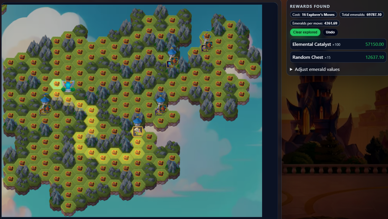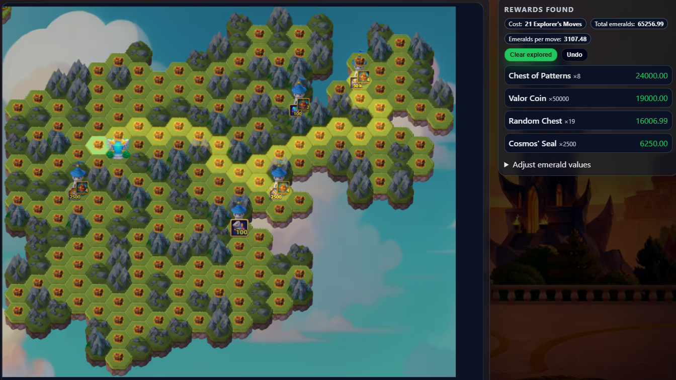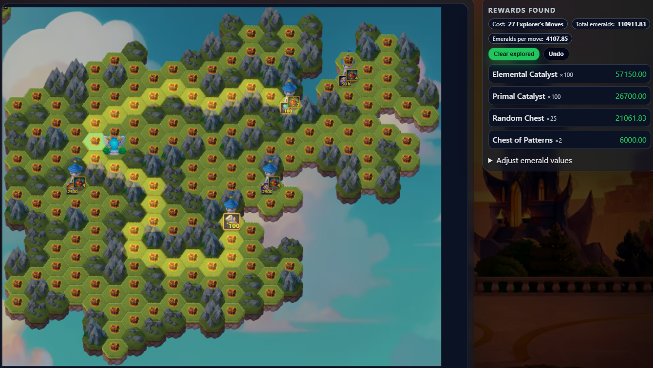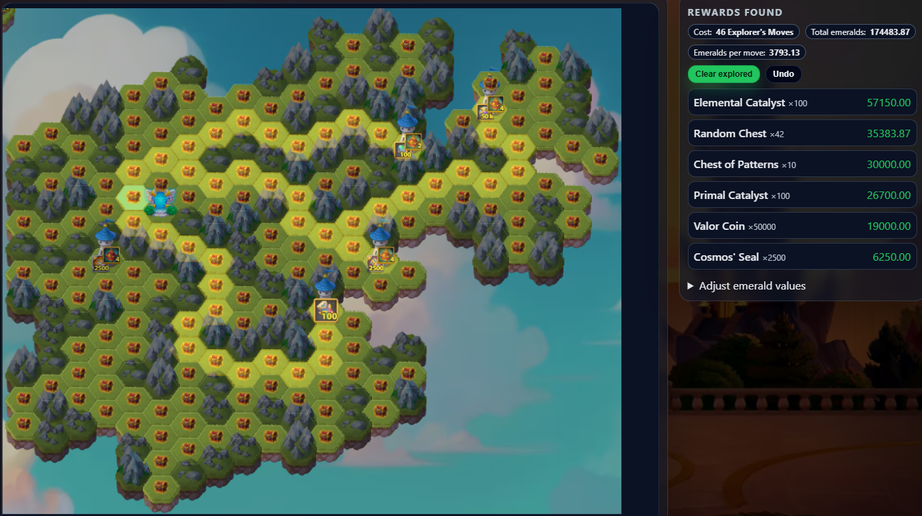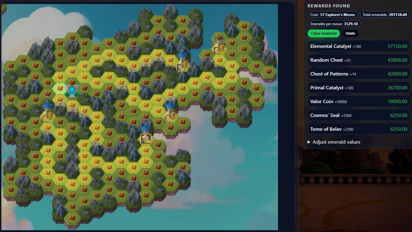 This tool shows the latest Mysterious Island layout and lets you plan your path to maximize rewards while minimizing resources.