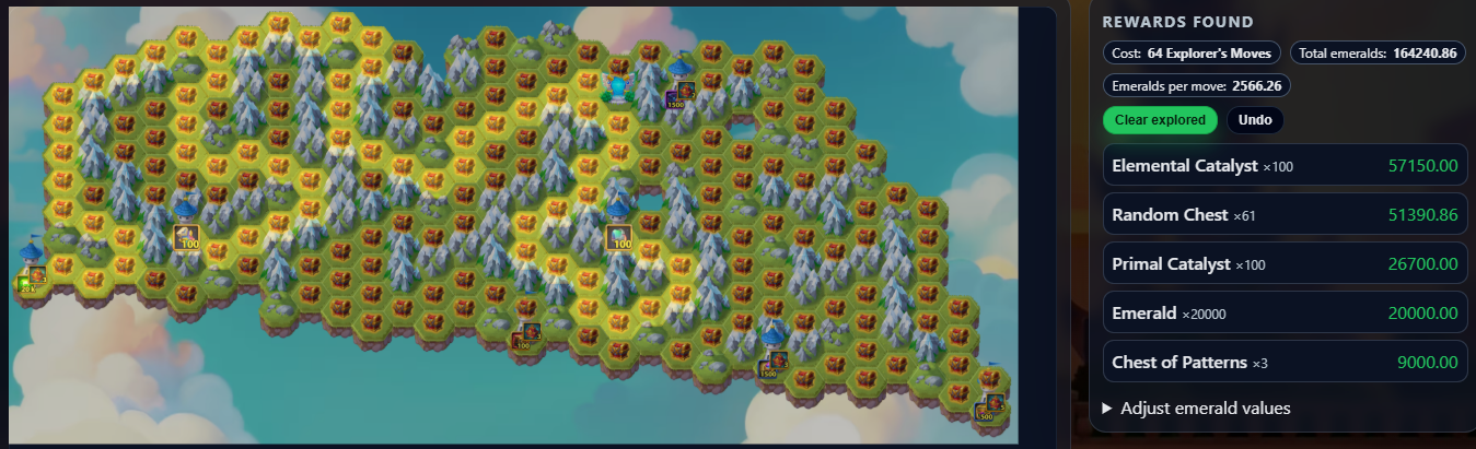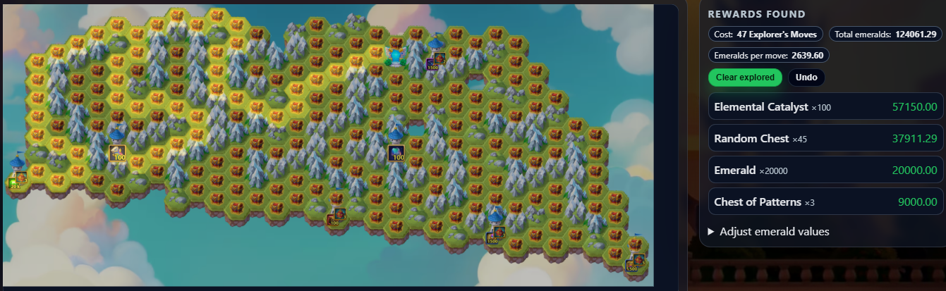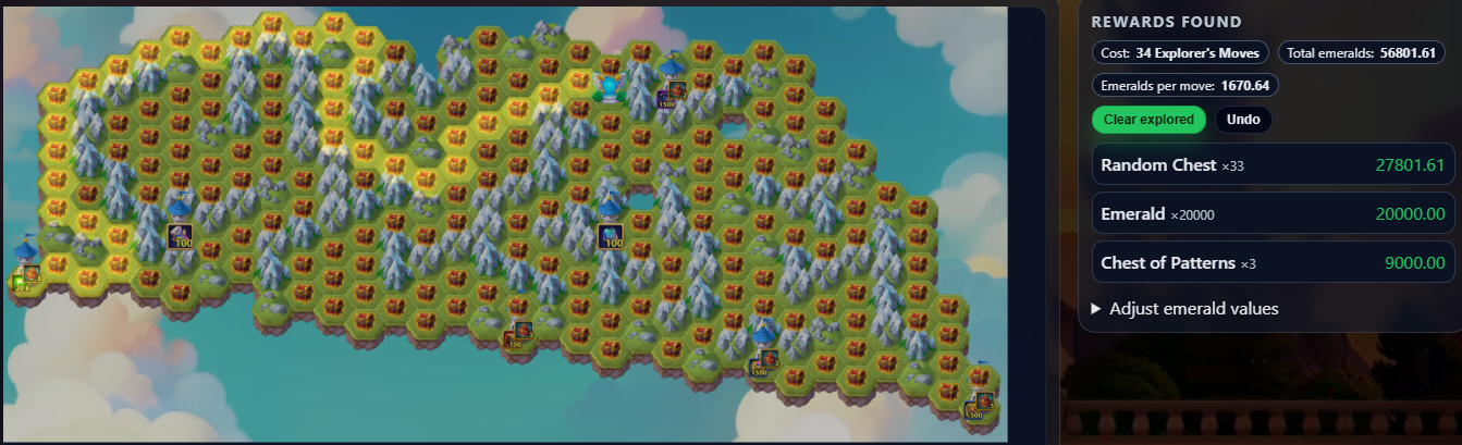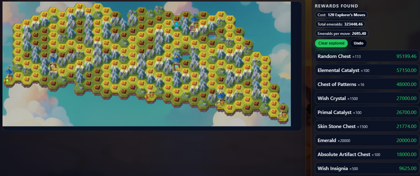This tool shows the latest Mysterious Island layout and lets you plan your path to maximize rewards while minimizing resources.