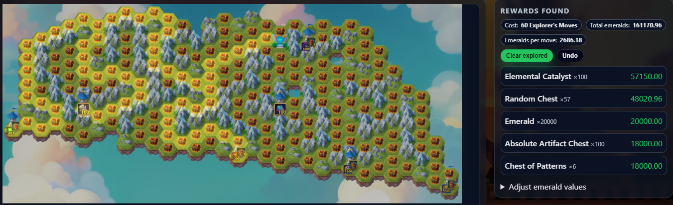 Rewards and emerald values are based on HWG and rarity fair.