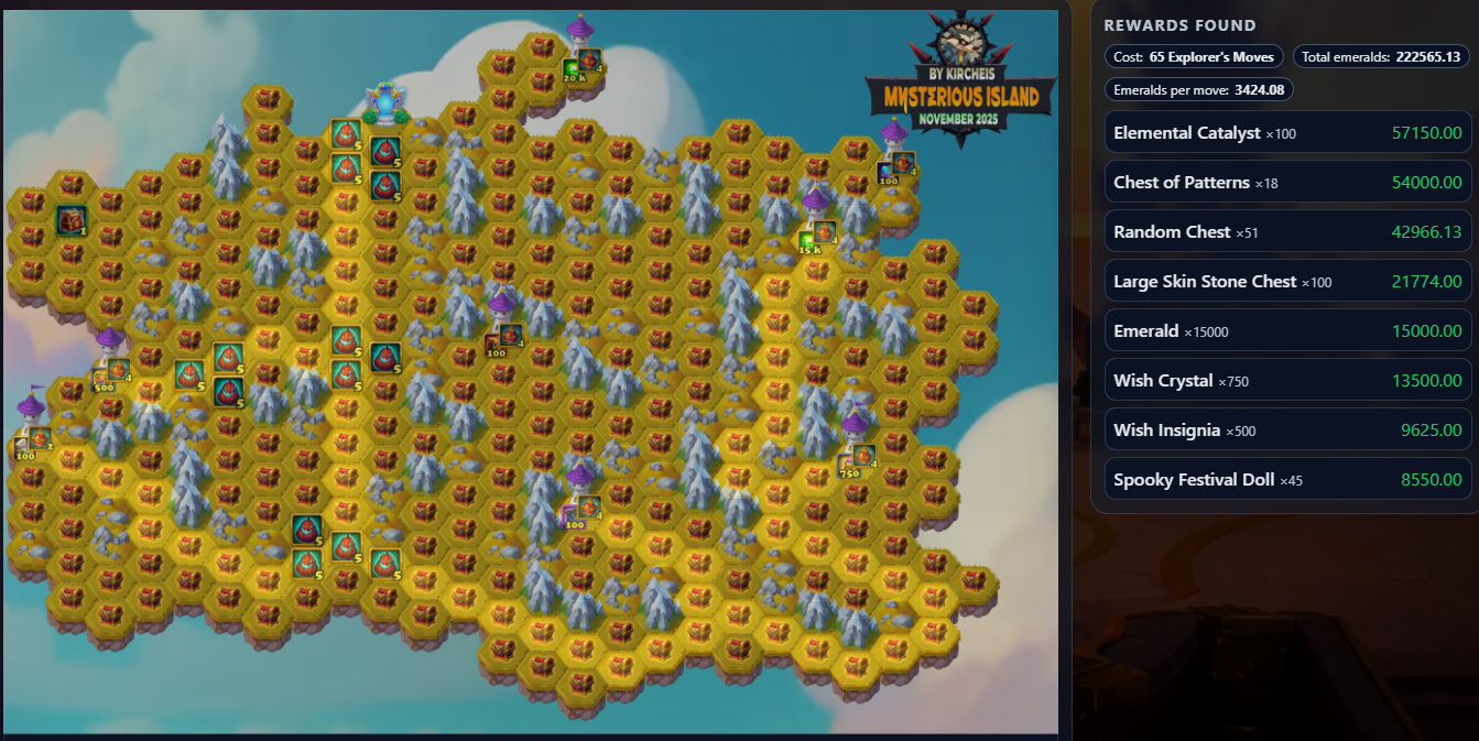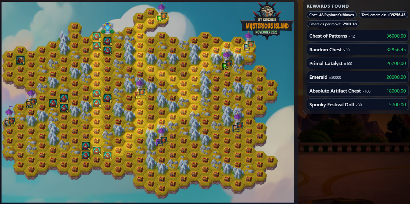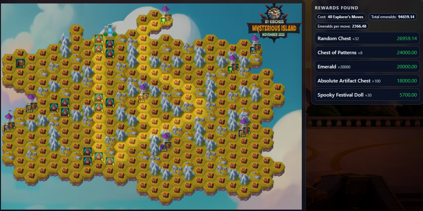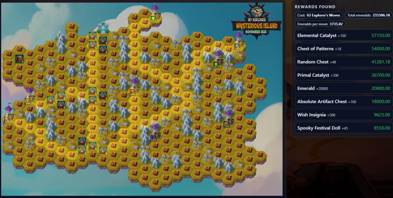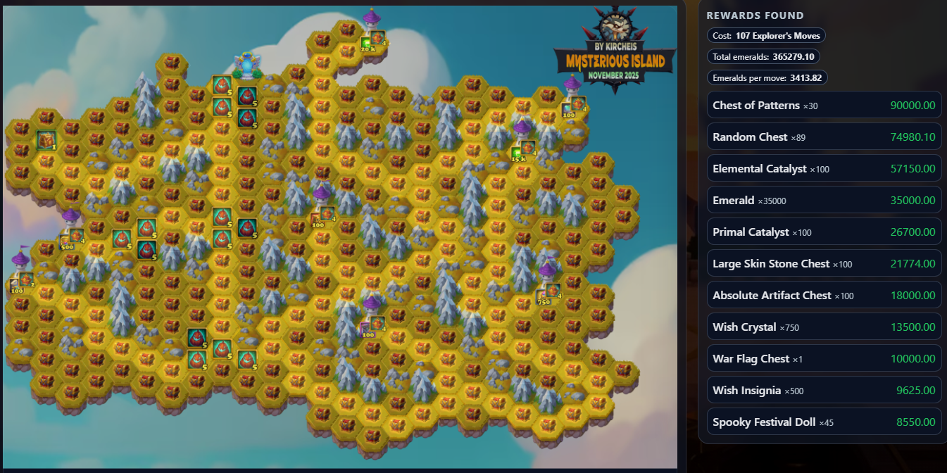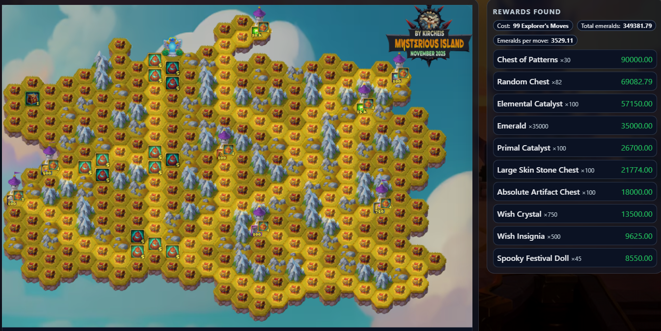This tool shows the latest Mysterious Island layout and lets you plan your path to maximize rewards while minimizing resources.