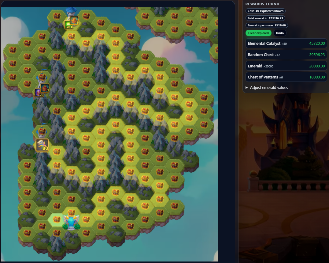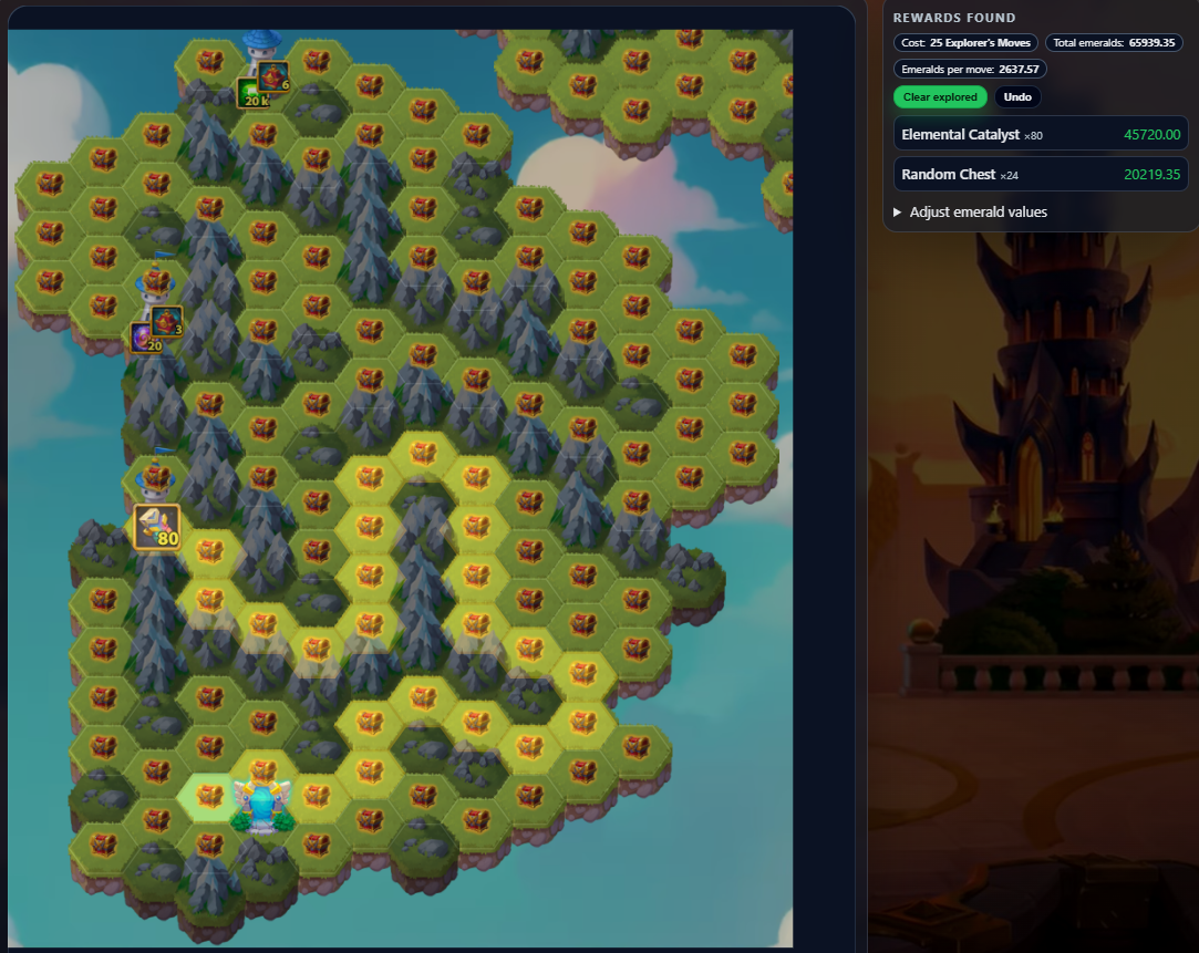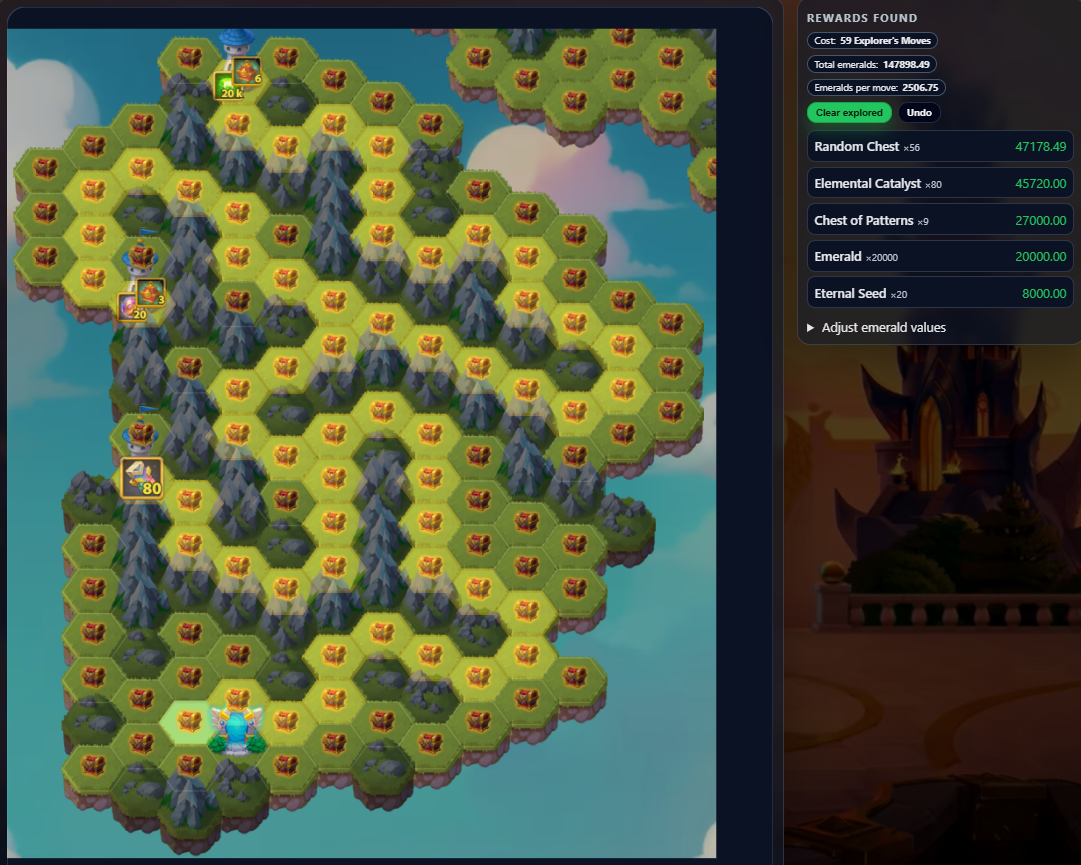 This tool shows the latest Mysterious Island layout and lets you plan your path to maximize rewards while minimizing resources.