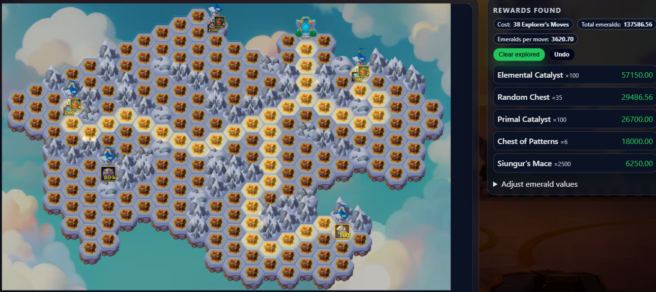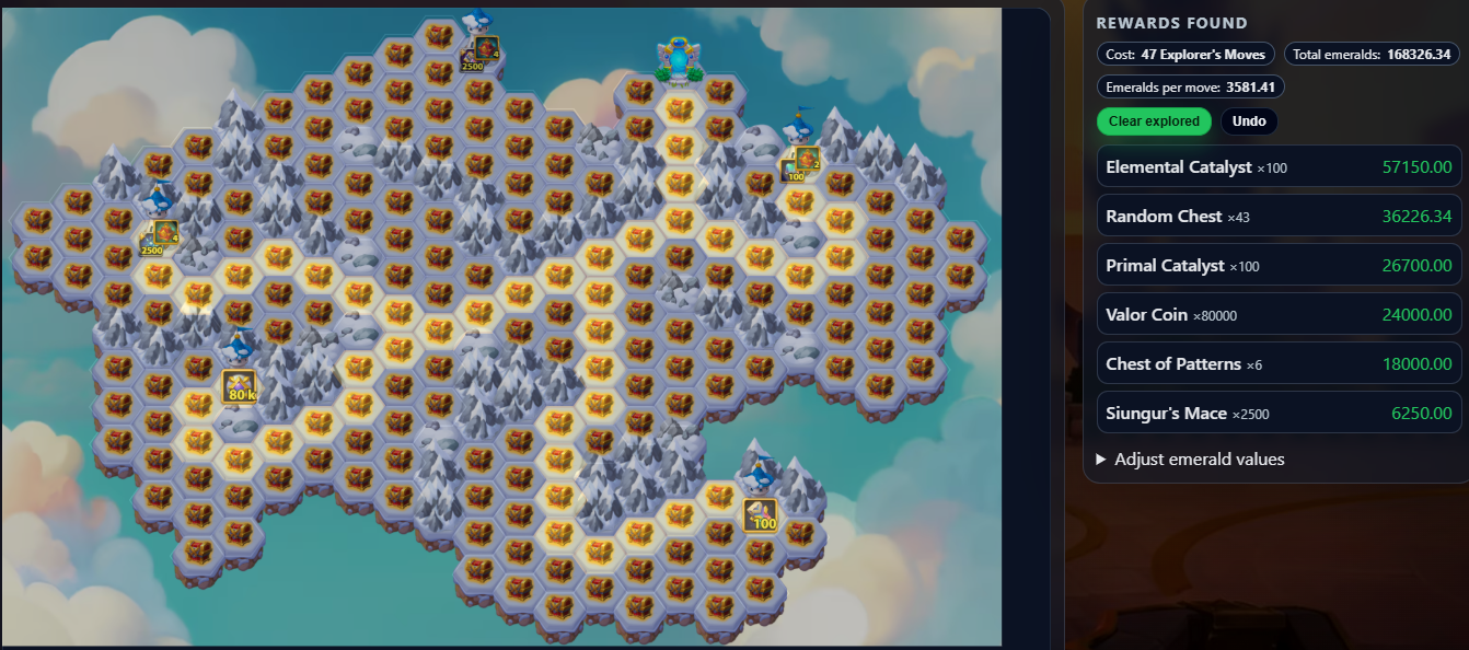This tool shows the latest Mysterious Island layout and lets you plan your path to maximize rewards while minimizing resources.